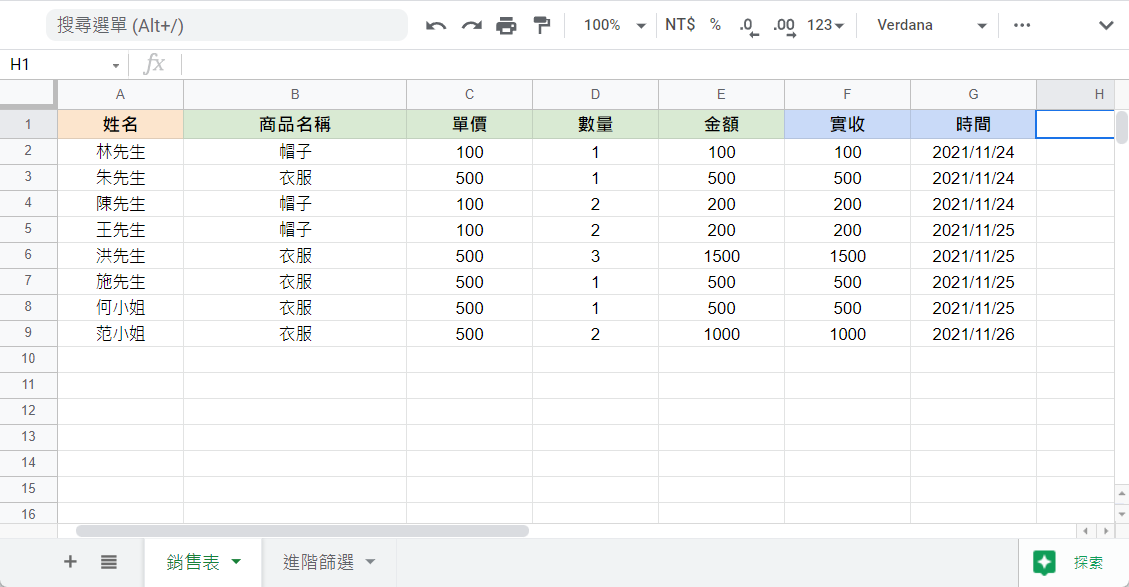 為了方便教學以及理解,下面是這一次示範的教學資料。而這一次我要用這份資料來篩選某一個時間的間距中的資料並且呈現在另一頁當中。