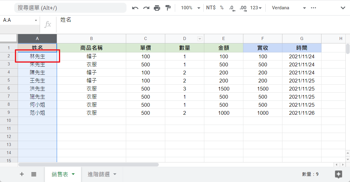 要先記住 A 這一欄,等一下下面的公式說明會先使用 A 這一欄當作範例來說明。