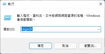 接著要到登錄檔更改使用者資料夾的名稱及位置。按 Win+R 後輸入 regedit,開起登錄編輯程式。
