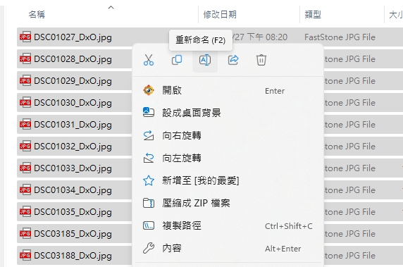 對檔案按右鍵,然後選擇重新命名。也可以直接按 F2 來快速重新命名。