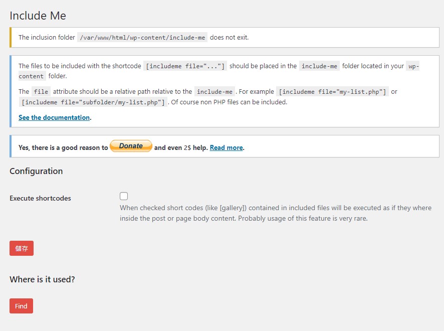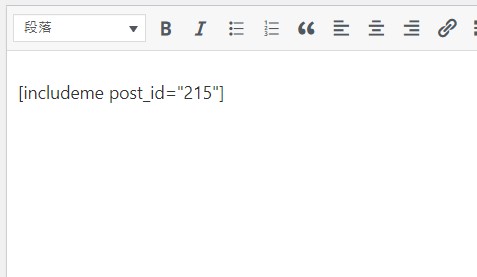 在安裝完這個外掛的時候就會發現怎麼沒有任何介面可以來操作呢?這是因為這個外掛是使用「短代碼」來實現 include 的功能的喔!